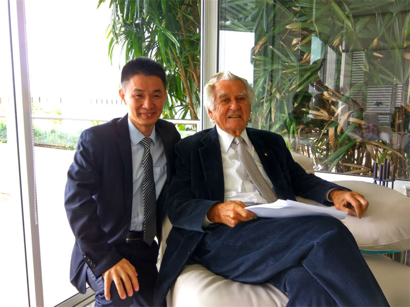 (右一:澳大利亞前總理鮑勃·霍克;右二:智璟科技(JTT)董事長陳勝)