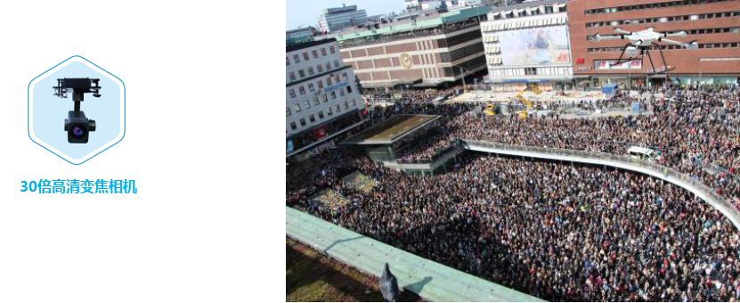 無人機可搭載30倍變焦相機在會場空中盤旋監(jiān)控,提供高清畫面,并可以快速機動到任何需要的區(qū)域上空,遠距離搜索發(fā)現(xiàn)地面可疑人員、車輛,提供強有力的空中情報保障。將視頻圖像實時傳輸回指揮中心, 指揮中心根據無人機傳輸回的資料對現(xiàn)場實時掌控, 一旦發(fā)現(xiàn)突發(fā)情況,無人機可以第一時間發(fā)現(xiàn),極大地提高了應急處理效率
