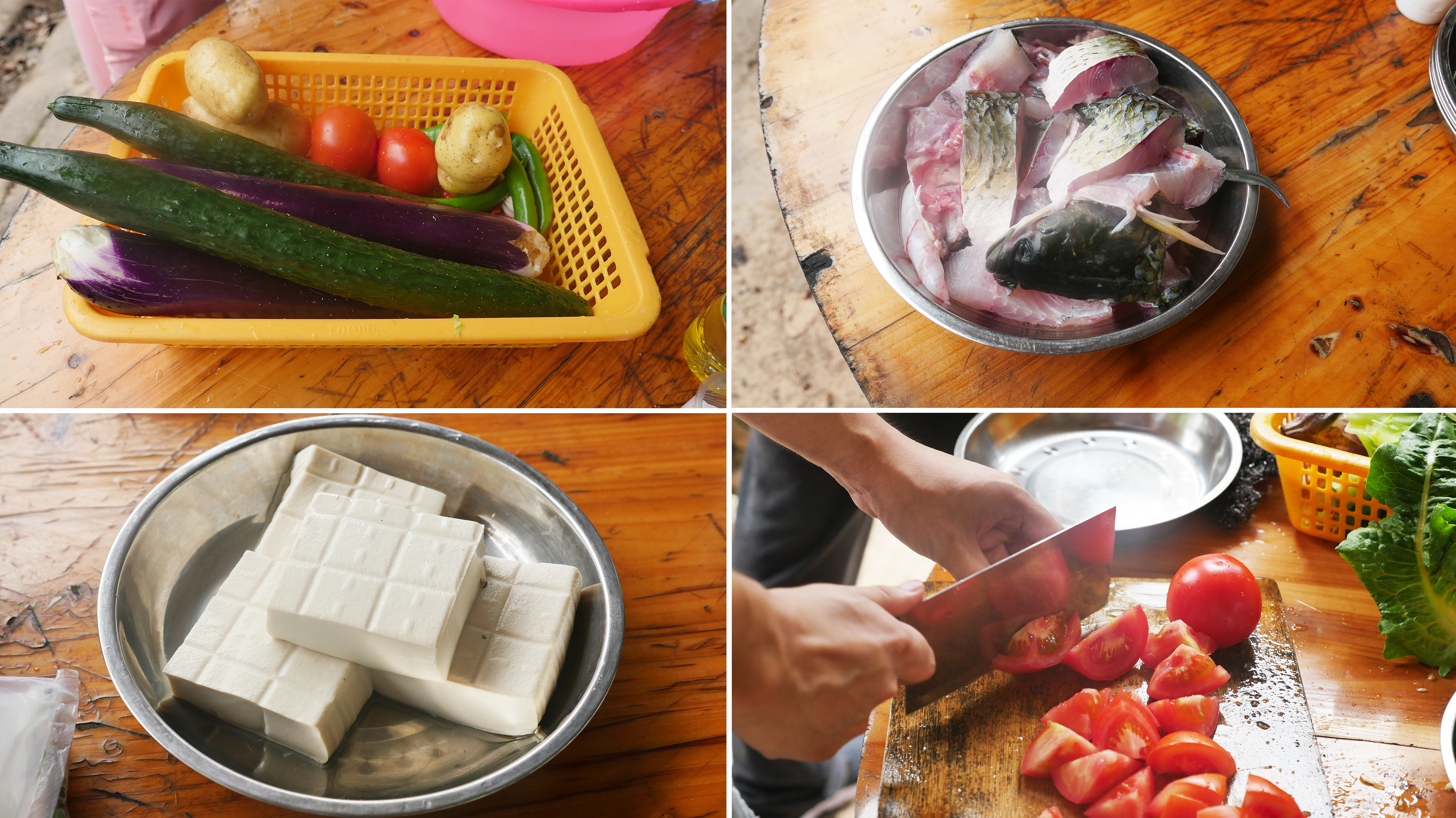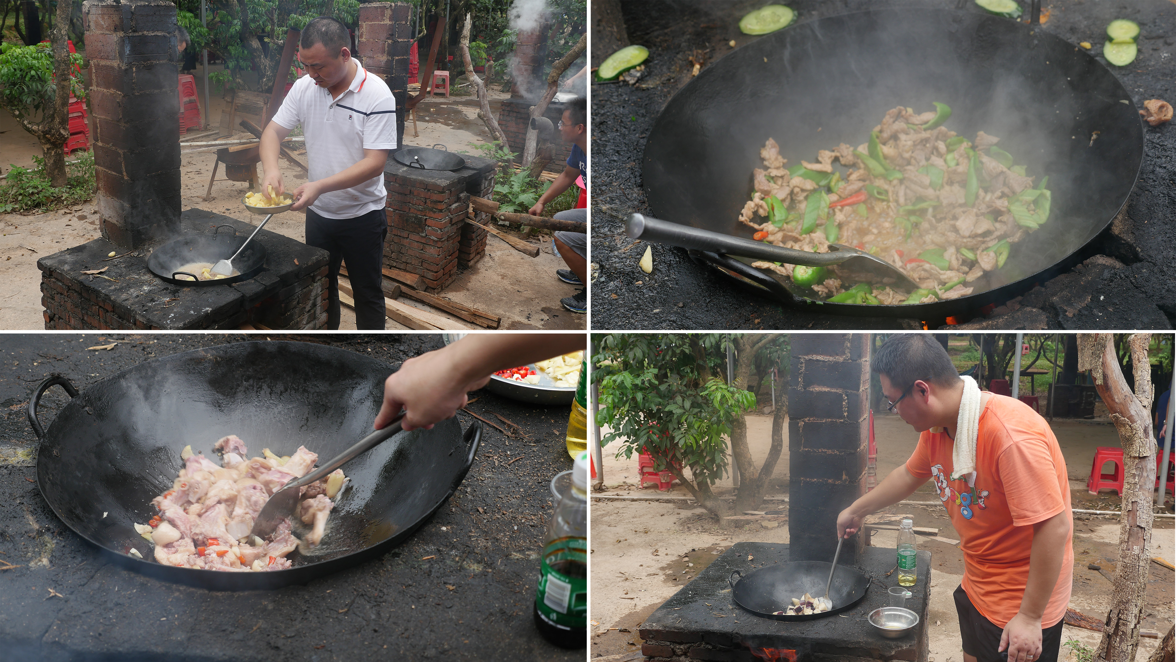 拓展游戲任務完成后,大家都饑腸轆轆,接下來就是展現大家廚藝的時候了!全體員工重新分配成四個隊,在隊長的帶領下開始野炊。雖然天氣炎熱,做飯條件艱苦,但為了吃到可口的飯菜,大家都分工合作,配合得井井有條。撈魚、抓雞、洗菜、生火,所有前期工作都有條不紊的進行著。
