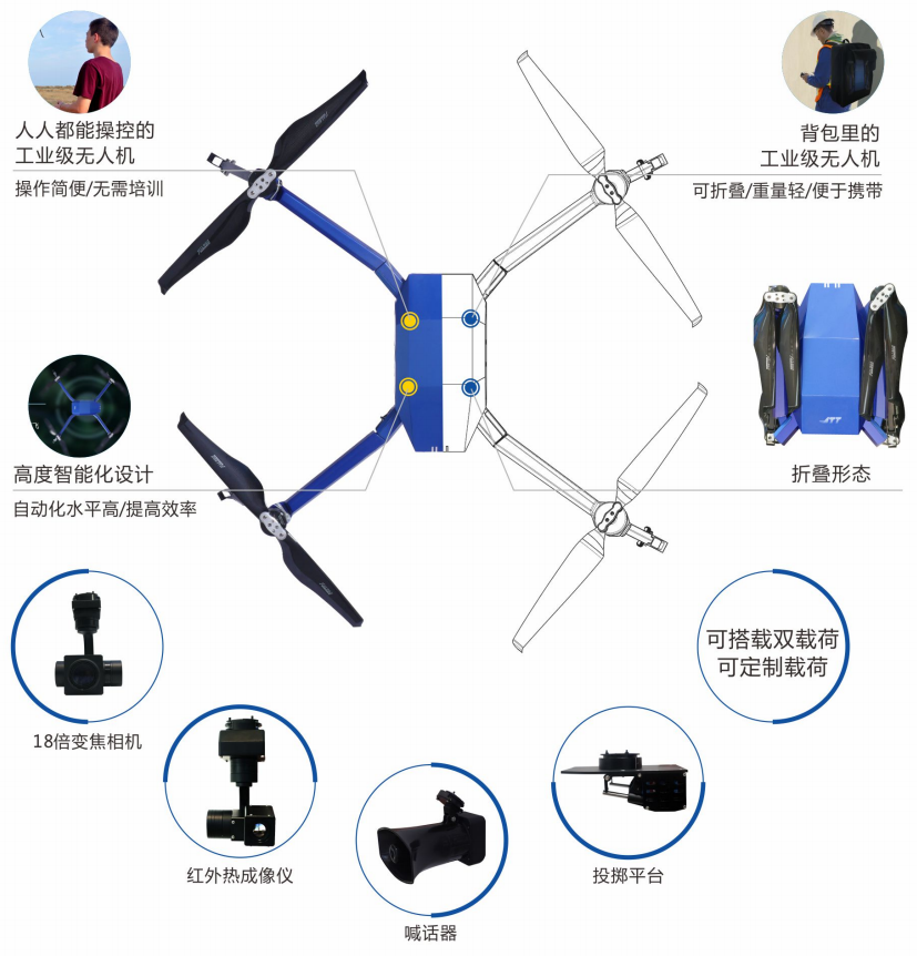 深圳市智璟科技有限公司(以下簡稱“JTT”)隸屬于深圳市城投集團,是一家專注于工業(yè)級無人機研發(fā)、生產(chǎn)、銷售、培訓(xùn)及服務(wù)于一體的國家級高新科技企業(yè)。JTT一直秉承“適應(yīng)復(fù)雜行業(yè)應(yīng)用環(huán)境,提高應(yīng)用場景工作效率”宗旨,保持技術(shù)的領(lǐng)先性,提供安全穩(wěn)定無人機系統(tǒng)方案和產(chǎn)品,切實解決用戶的痛點。公司自主研制的多旋翼工業(yè)級無人機廣泛應(yīng)用于行業(yè)規(guī)模定制、公共安全、海上救援以及環(huán)保監(jiān)測等領(lǐng)域,并不斷融入新的行業(yè)應(yīng)用。