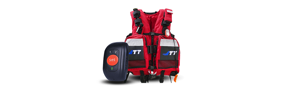 救援人員穿戴智能定位報警救生衣,在人員落水或人工觸發情況下,