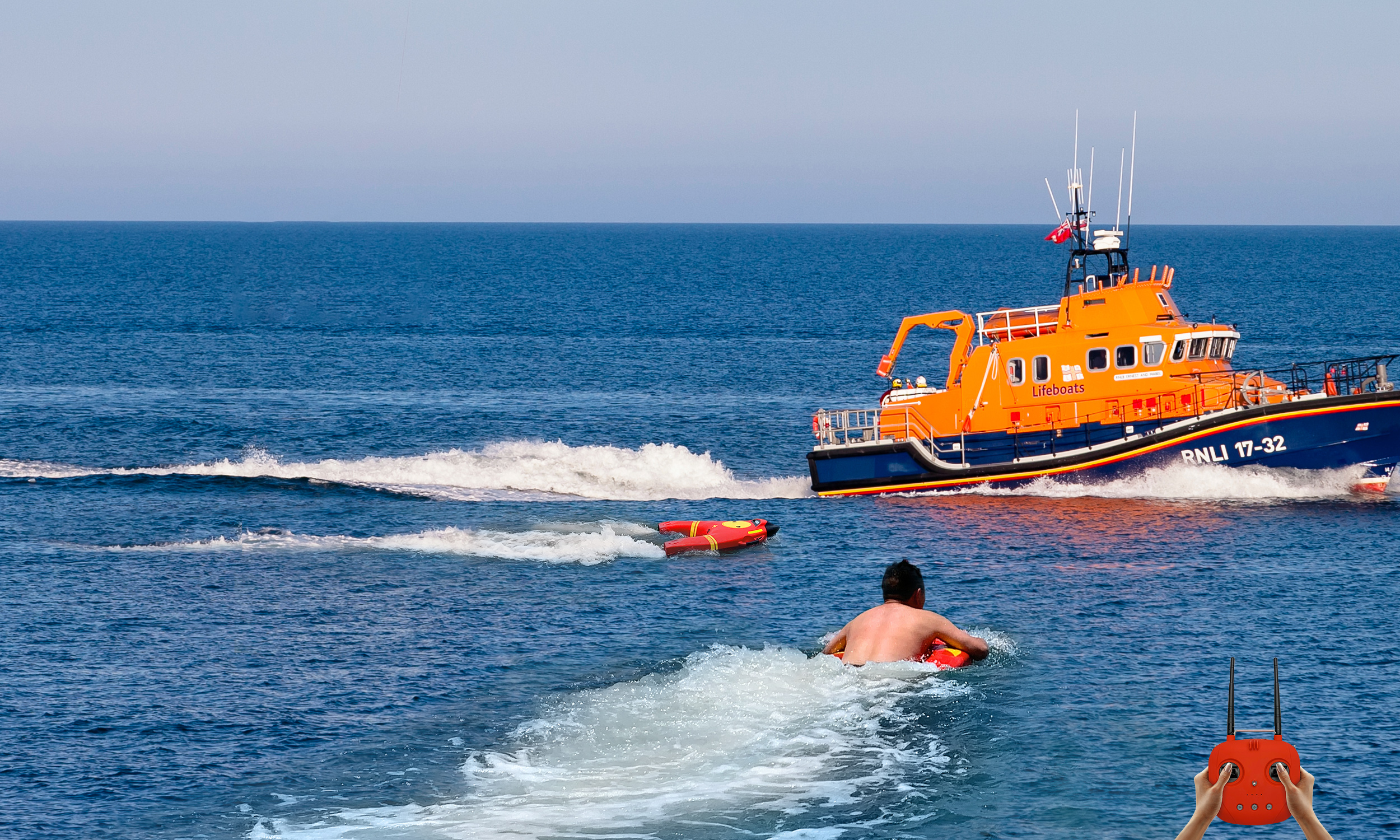R1開啟后,能通過遙控器操控,最快以25.2km/h的速度驅動,迅速到達落水者身邊。之后,還可以開啟一鍵返航,自動回到岸上。如果路上遇到信號丟失,它也能自動返回。