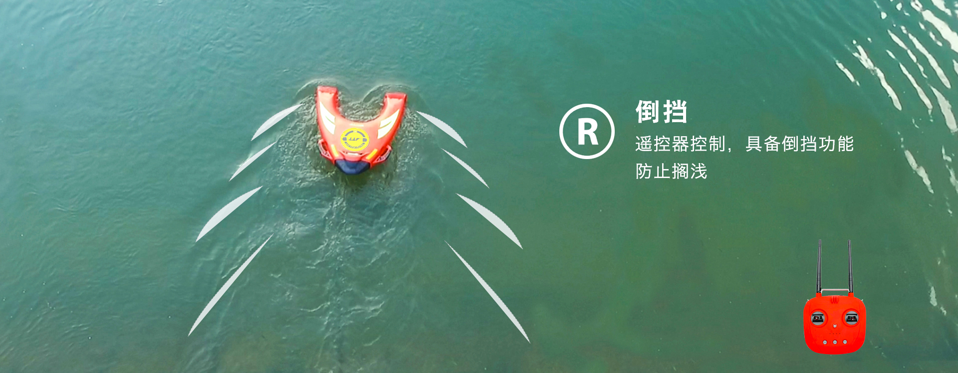 通過遙控器右撥,即可實現機器人倒退功能。如果在救援過程中遇到擱淺、礁石等情況及障礙,倒擋功能就可以輕松擺脫面前困境,重新返航。