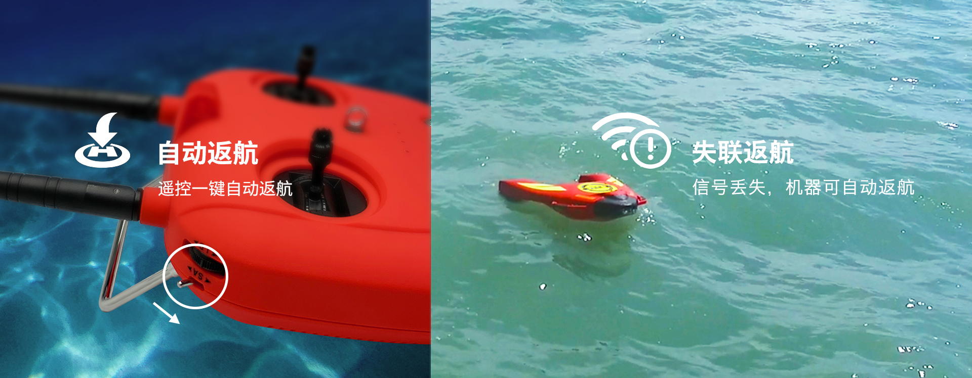 保障救援者安全:遙控本機雙操作,遙控可實現1500米超遠距離控制,操作簡便,救援者可遠距離對溺水者進行施救,有效避免救援者因經驗不足、體力不支而發生額外傷亡。還支持一鍵返航、原路返航、失控返航等功能。