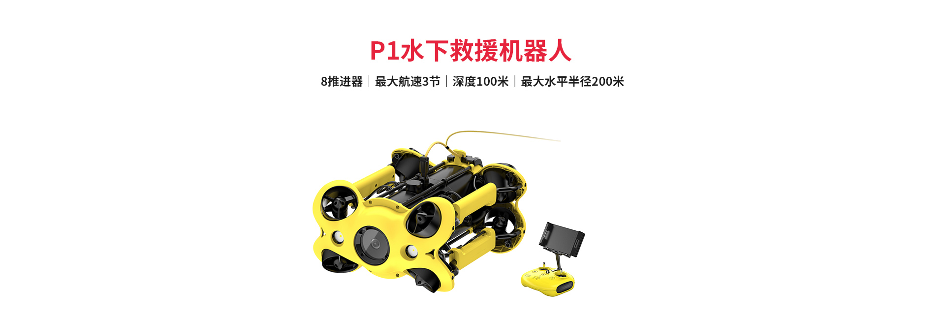 P1救援水下機器人是一款為專業用戶和政企用戶設計的輕工業級水下機器人。采用8推進器全矢量布局,360度全方位移動。最大航速3節、深度100米、最大水平半徑200米。支持機械臂、GOPRO、外置LED燈和激光卡尺等多種掛載。內置4K/1200萬像素EIS防抖相機、4000流明LED燈、可拆卸/可更換電池,可插拔SD存儲卡、鋁合金緊湊型機身(重量小于5KG)、選配電動繞線器,單人操作可3分鐘快速部署。