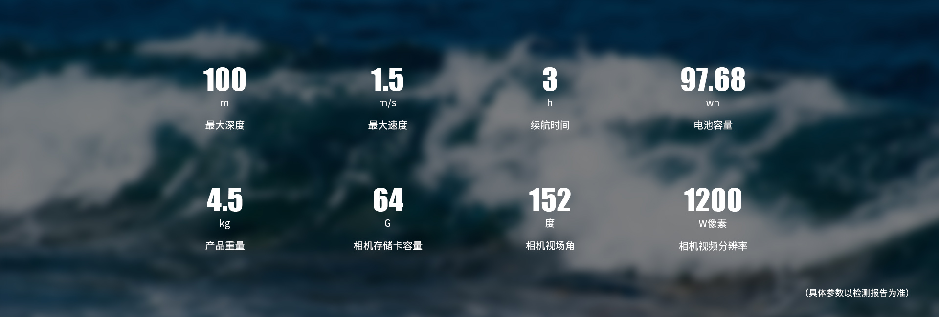 · 最大航速3節,最大下潛100米,最大水平半徑200米
