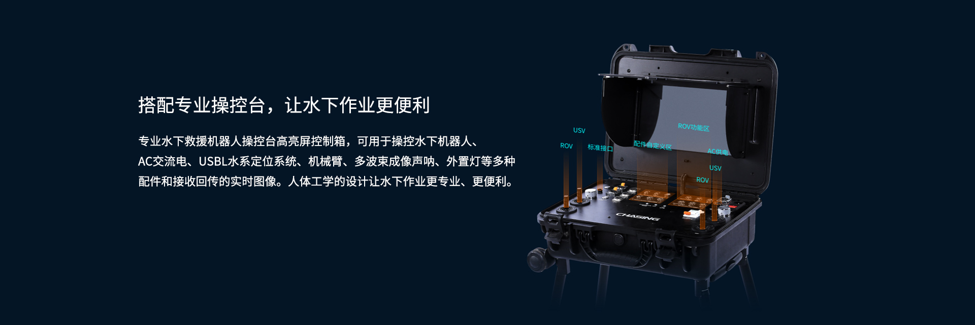 配置防水帶屏遙控器,顯示屏尺寸7英寸,亮度700cd/m2,分辨率1920×1080;ROV接口*1,HDMI *1,USB*1;type-c*1,RJ45*1