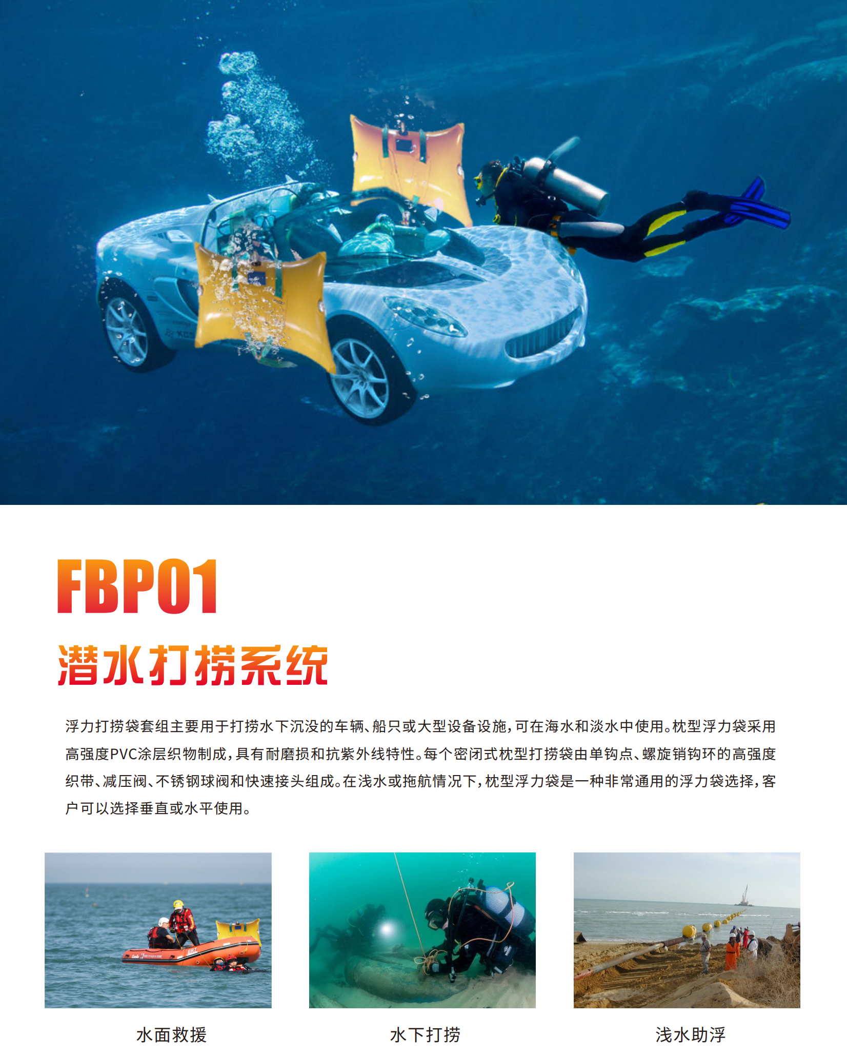 - 工作環境:可用于海水、淡水,浮力袋配有過壓防爆安全閥