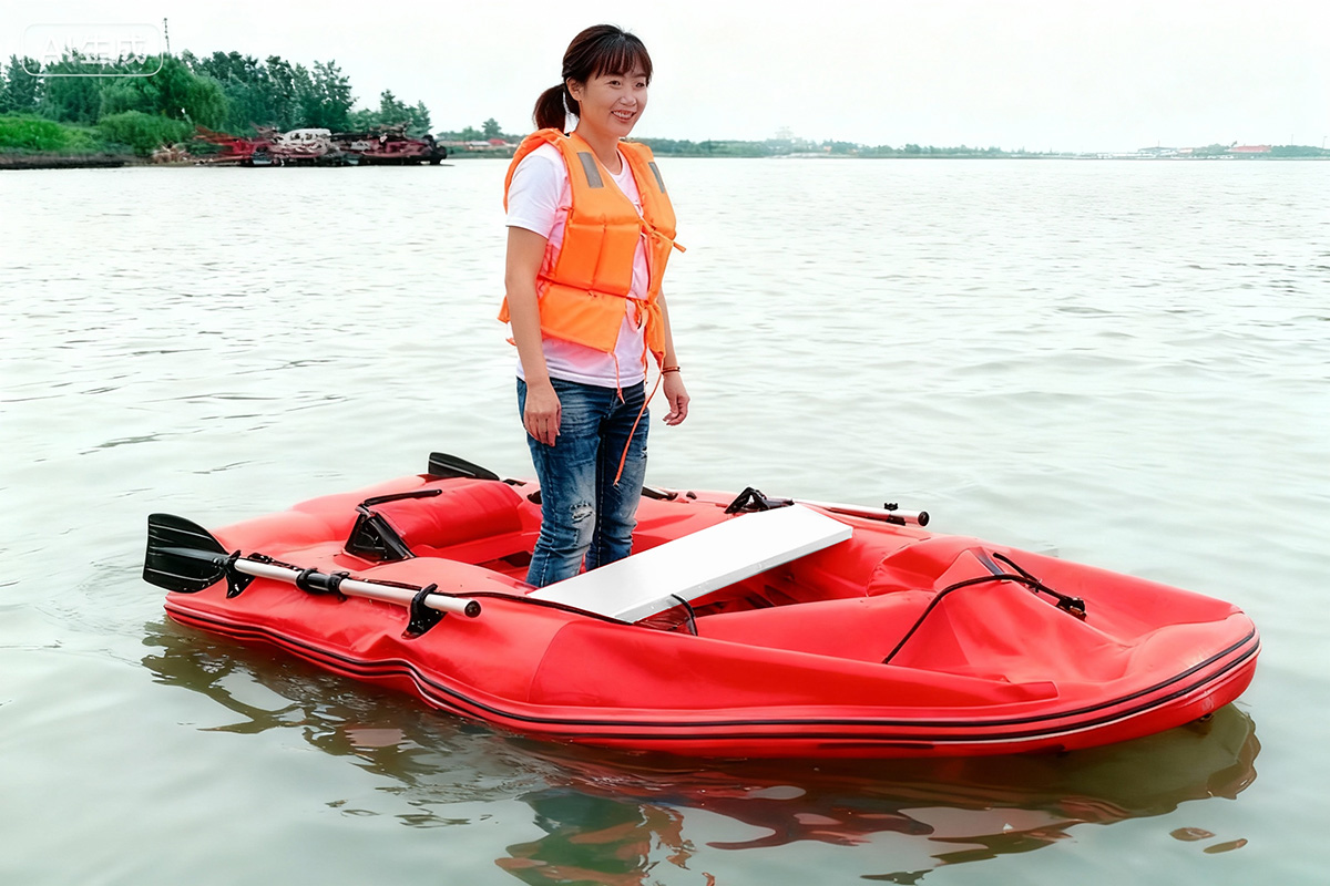 配置:鋁合金劃槳2支、坐板2塊、充放一體高壓電動泵1套(可連接220V市電)、腳踏充氣泵、船包1個、維修工具1套(專用膠水1支、氣閥扳手1個、維修材料3張),安全繩索2根,D型鋼制拉環6個