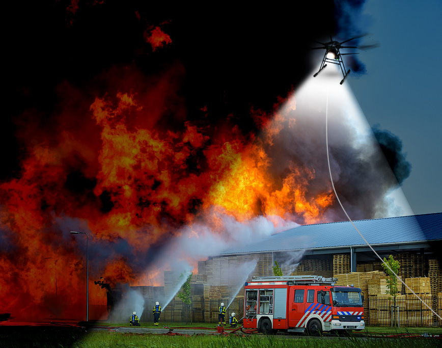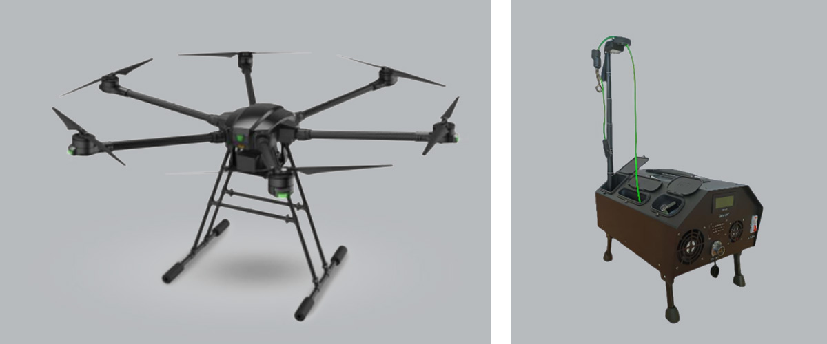 系留無人機為常見無人機續航短的弱點提供了解決方案,打破無人機續航時間的限制,為無人機長時間駐空提供能量支持。TD01系留無人機,可手動操作或遠程控制,無人機飛行平臺通過掛載不同任務載荷實現不同的應用場景,可隨人、車、船等一切可移動設備轉移地點目標,主要用于應急照明、視頻監控、信號發射、電視直播和單兵偵察等。