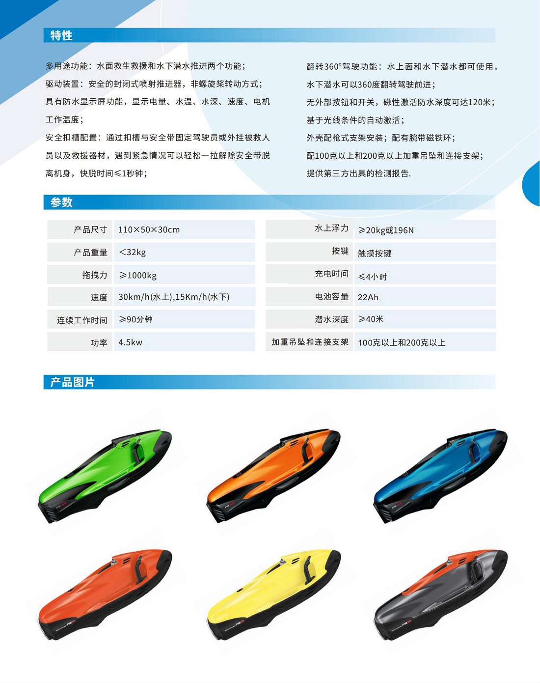 最大拖拽能力800kg,潛水深度40米