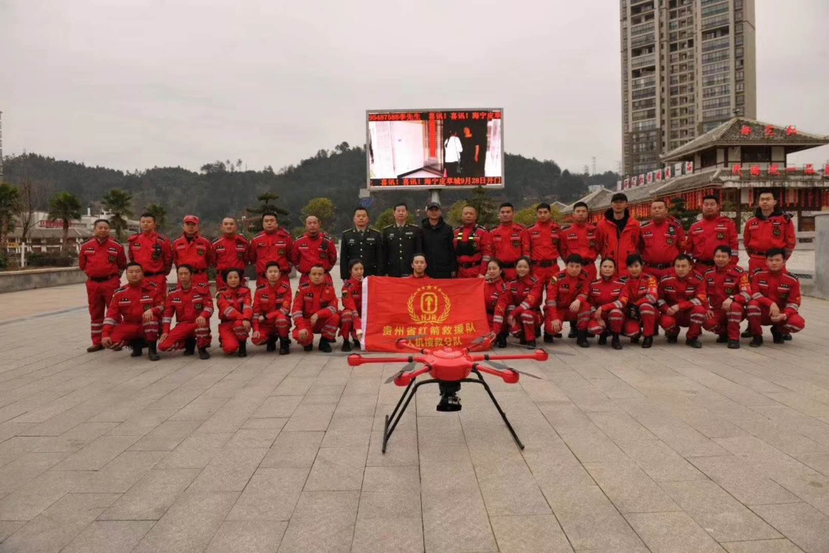 2018年1月13日,由貴陽市防震救災中心、黔南州惠水縣人武部、惠水縣公安局組織,貴州紅箭救援隊在黔南州惠水縣好花紅廣場進行救援演練大會,智璟科技攜T60V2救援無人機(紅色)應邀出席此次演練大會。